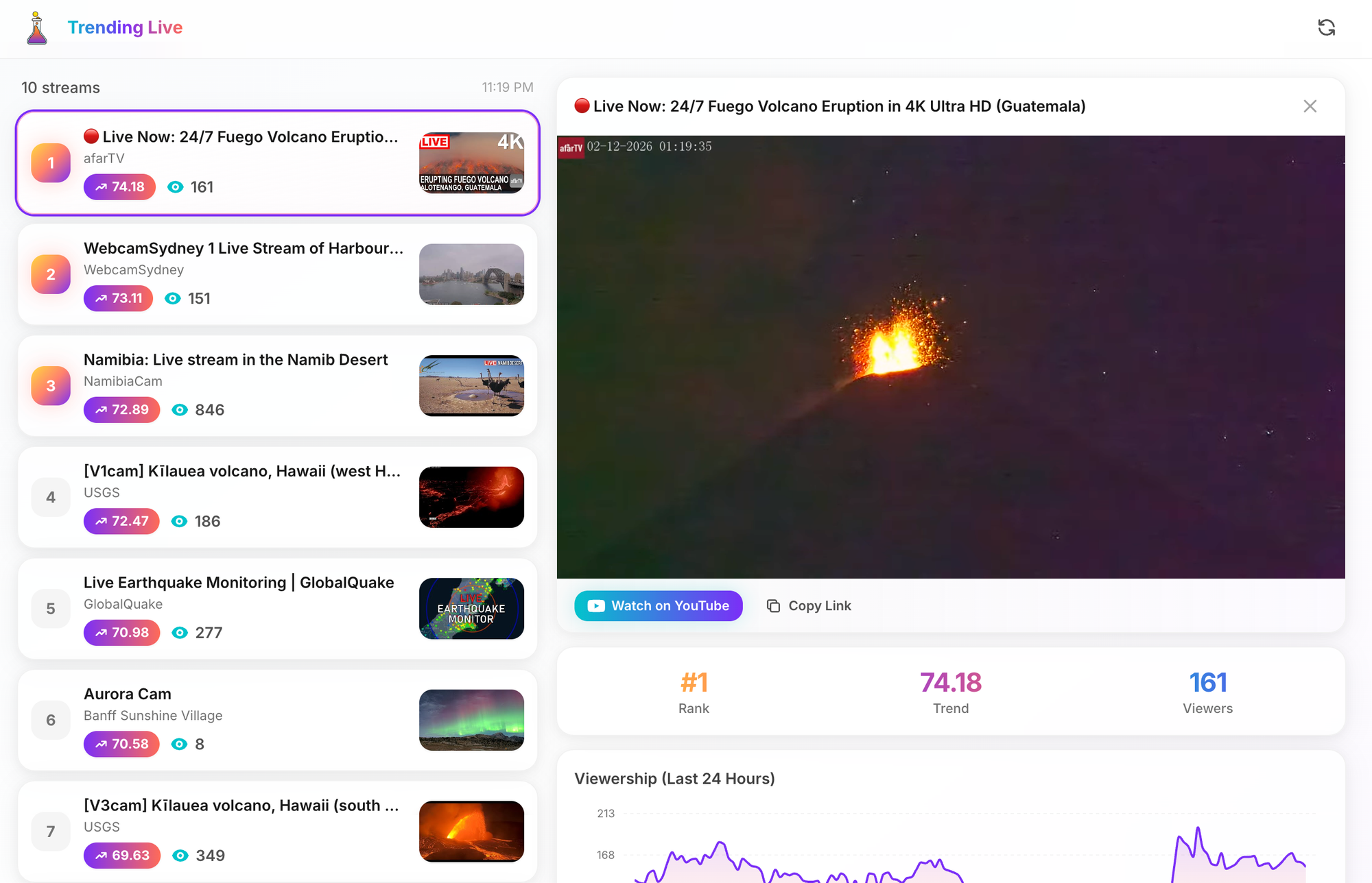 From this was born a platform that accepts a list of youtube livestreams and then periodically polls the livestream for a status and the current viewcount. The viewcount is interpreted as a measure into the "interest" in the stream and if there is a "anomalous" change in the viewership, something is likely happening and it could be interesting.